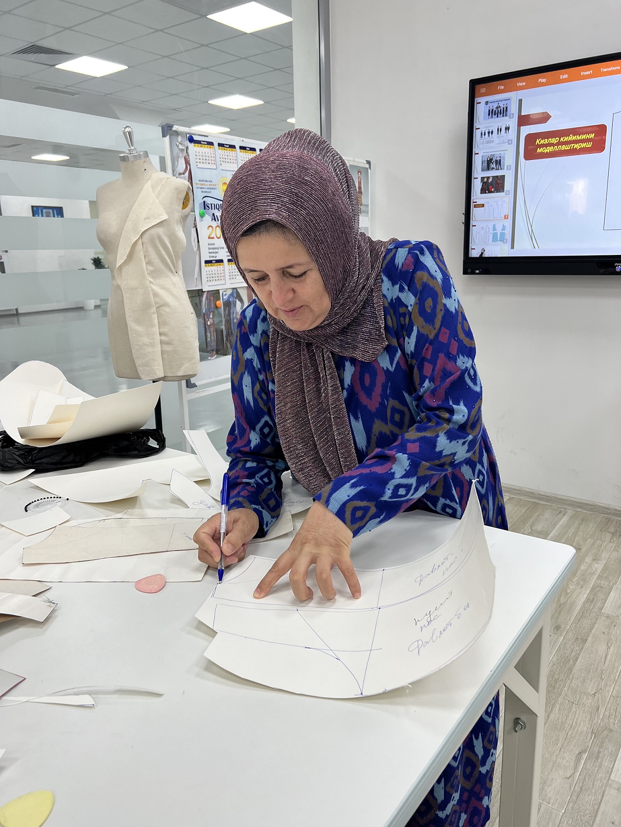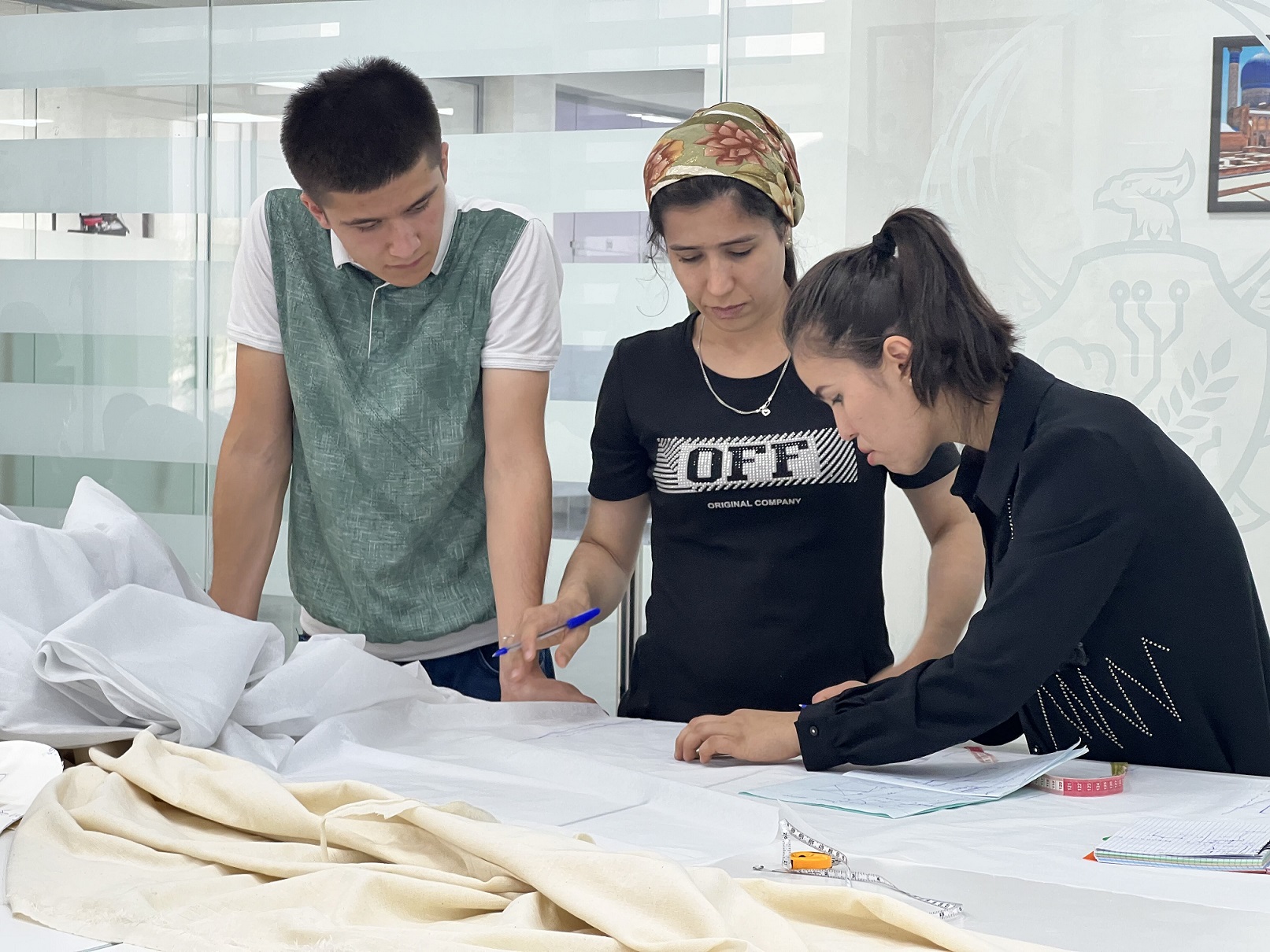 Then, in the Namangan Monocenter, after practical cutting and fashion design, each participant of the course sewed a jacket individually from the cutting of the fabric to the final product.
