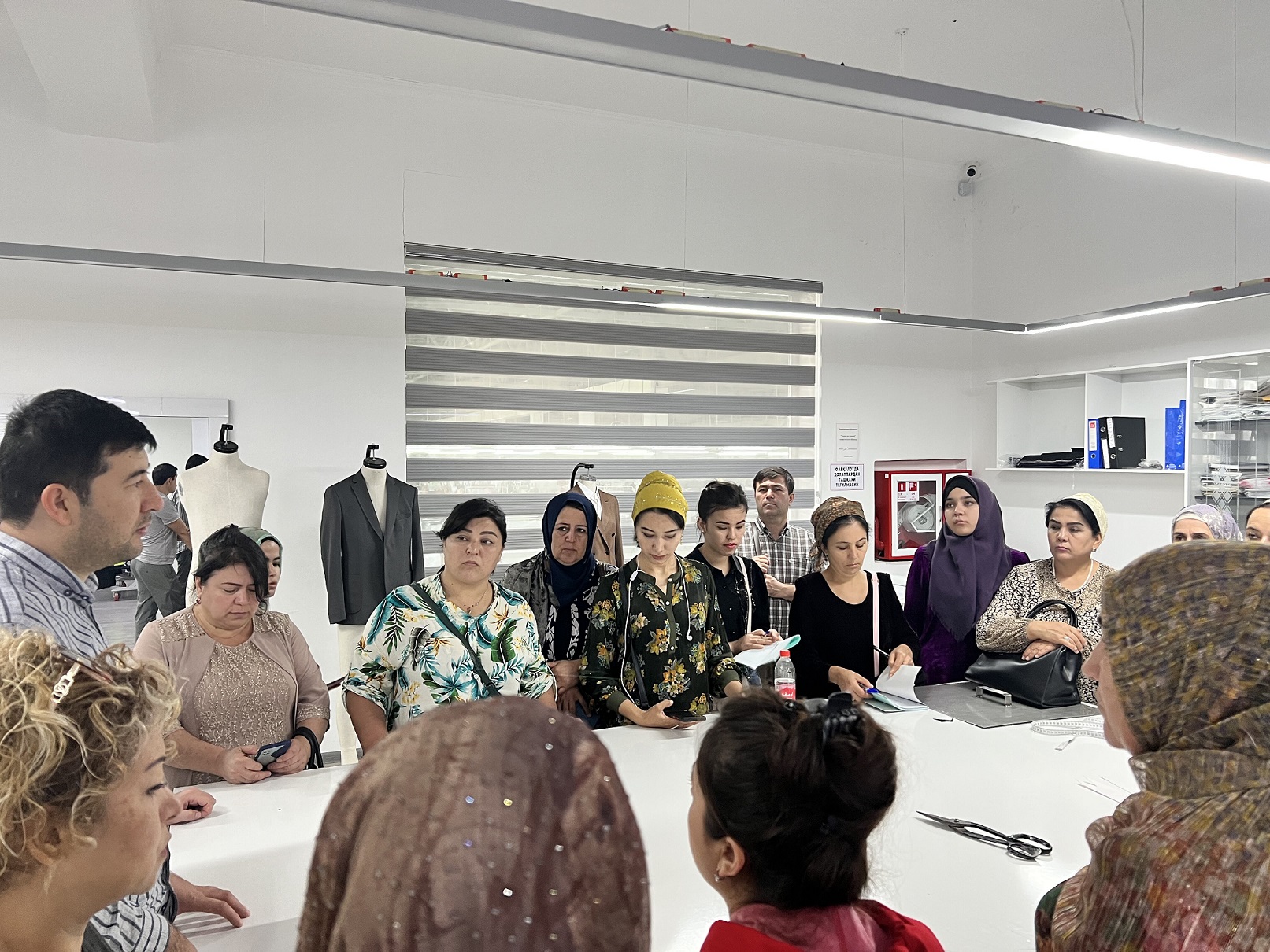 С 26 сентября по 4 октября 2022 года 25 представителей таджикских швейных предприятий приступили к практическому обучению в центре производственного обучения «Моноцентр» Наманганской области, Республики Узбекистан. Поездка была организована в рамках проекта “Повышение конкурентоспособности МСП в текстильно-швейном секторе Таджикистана для выхода на внешний рынок” при поддержке GIZ IRDP TRIGGER II.